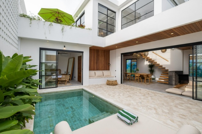 מתחם של 2 וילות בשכונת קוטה שנבנו למטרת השכרה לתקופות קצרות, כל אחת מהן מציעה שילוב ייחודי של עיצוב באלינזי מסורתי מבחוץ ובנייה מודרנית ויוקרתית מבפנים. בכל וילה חדר שינה וסלון עם תקרות גבוהות. כל וילה כוללת בריכה קטנה, סלון ממוזג ומטבח פתוח עם שולחן אוכל מודולרי. הווילות זוכות להמון אור הודות לחלונות זכוכית גדולים מהרצפה עד התקרה, שמכניסים אור טבעי ושומרים על טמפרטורה קרירה בחלל הפנימי. העיצוב הפנימי תוכנן בקפידה לשלב נוחות מודרנית עם אסתטיקה מסורתית באלינזית.